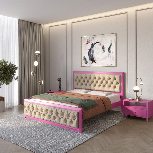Односпальне дерев'яне ліжко Mebigrand Барселона Б3 Рожевий (S2060R30B)/Аляска 23 (Бежевий) 90х190 см (MBG-12758)