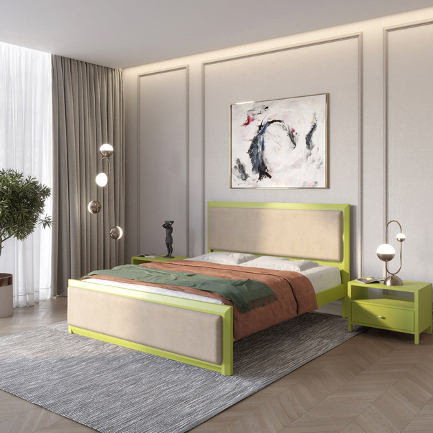 Односпальне дерев'яне ліжко Mebigrand Барселона Б4 Лайм (S3050G70Y)/Аляска 23 (Бежевий) 90х190 см (MBG-12986)