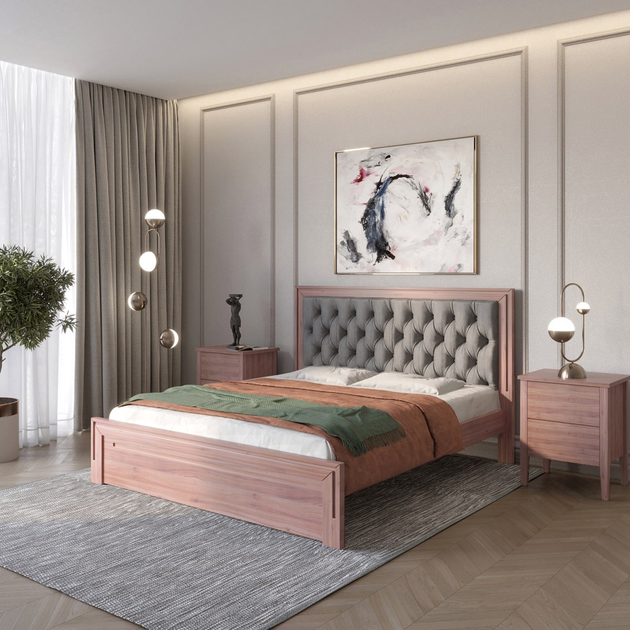 Двоспальне дерев'яне ліжко Mebigrand Торонто Т5 Яблуня/Аляска 93 (сірий) 180х200 см (MBG-8865)