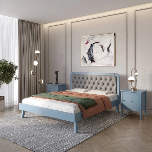 Двоспальне дерев'яне ліжко Mebigrand Токіо Сіро-синій (S7010R90B)/Аляска 23 (Бежевий) 180х190 см (MBG-4720)