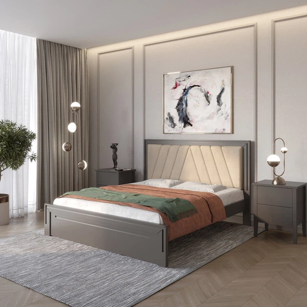 Односпальне дерев'яне ліжко Mebigrand Торонто Т3 Графітовий (RAL9011)/Аляска 23 (бежевий) 90х200 см (MBG-7838)