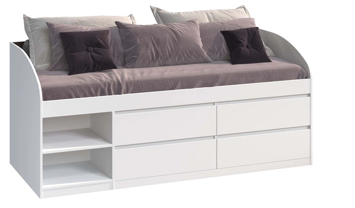 Ліжко Брайт 4 шухляди Мастер Форм односпальна 835 x 2032 x 840 h ( спальне місце 800 х 2000) Білий 30055 (правостороннє)