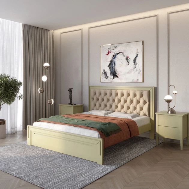 Односпальне дерев'яне ліжко Mebigrand Торонто Т3 Оливковий (RAL1020)/Аляска 23 (бежевий) 90х200 см (MBG-7573)