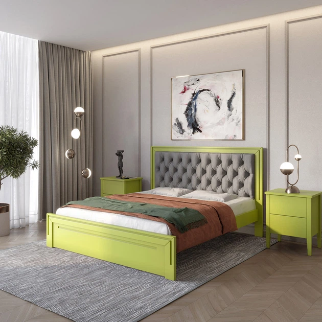 Односпальне дерев'яне ліжко Mebigrand Торонто Т5 Оливковий (RAL1020)/Аляска 93 (сірий) 90х200 см (MBG-9150)