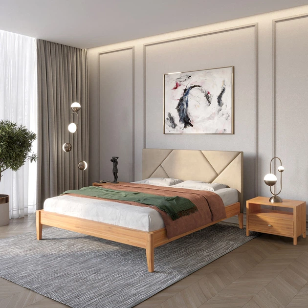 Двоспальне дерев'яне ліжко Mebigrand Нью-Йорк ДК Горіх лісовий/Аляска 23 (Бежевий) 160х190 см (MBG-10243)