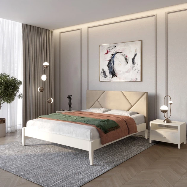 Двоспальне дерев'яне ліжко Mebigrand Нью-Йорк ДК Білий (RAL9003)/Аляска 23 (Бежевий) 160х190 см (MBG-10163)