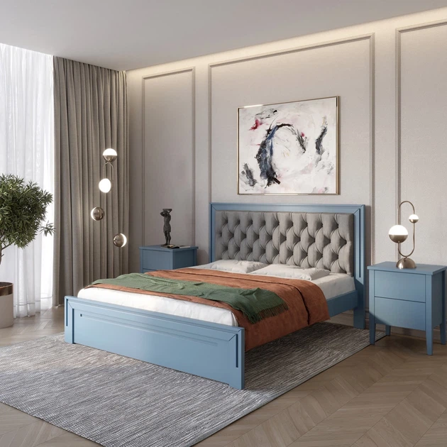 Односпальне дерев'яне ліжко Mebigrand Торонто Т6 Сіро-синій (S7010R90B)/Аляска 93 (сірий) 90х200 см (MBG-9864)