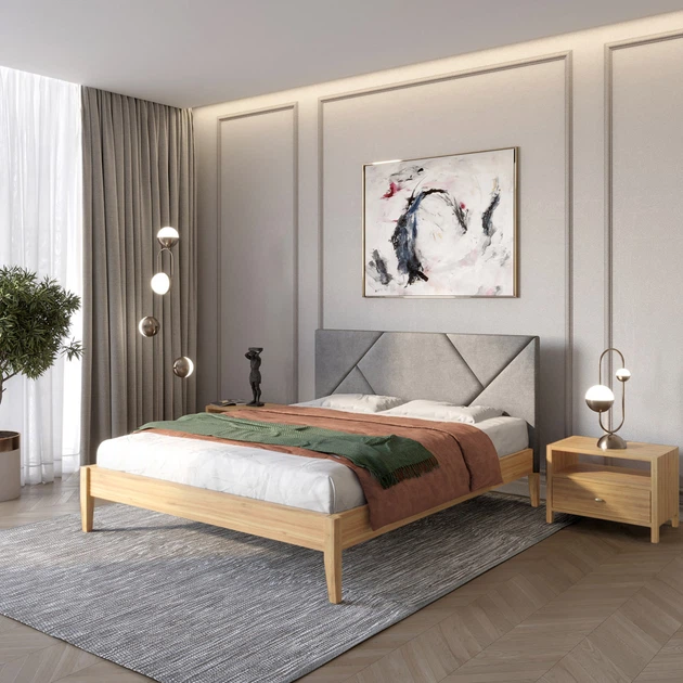 Двоспальне дерев'яне ліжко Mebigrand Нью-Йорк ДК Горіх світлий/Аляска 93 (Сірий) 160х190 см (MBG-10370)
