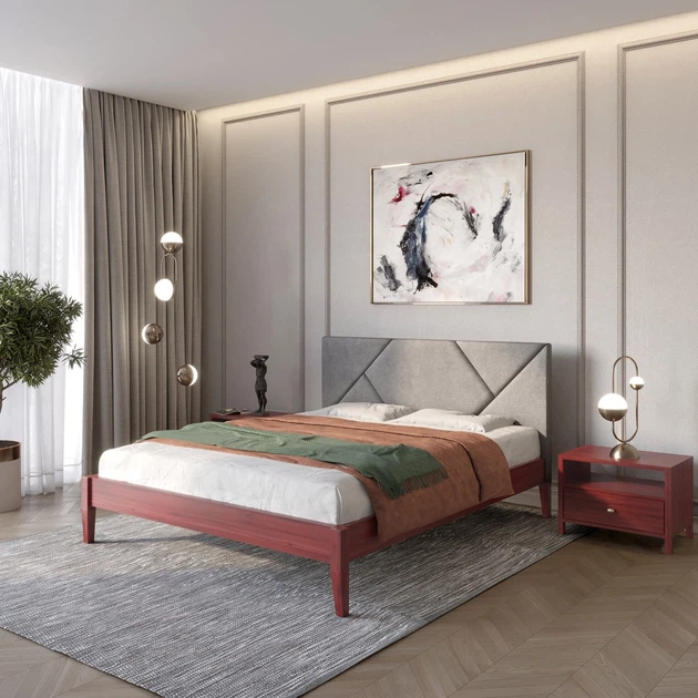 Двоспальне дерев'яне ліжко Mebigrand Нью-Йорк ДК Махонь/Аляска 93 (Сірий) 160х190 см (MBG-10345)