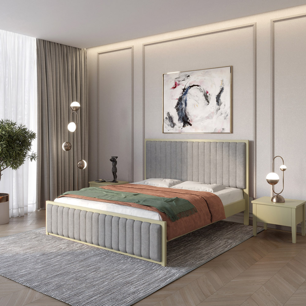 Двоспальне дерев'яне ліжко Mebigrand Відень Лайм (S3050G70Y)/Аляска 93 (Сірий) 180х200 см (MBG-10015)