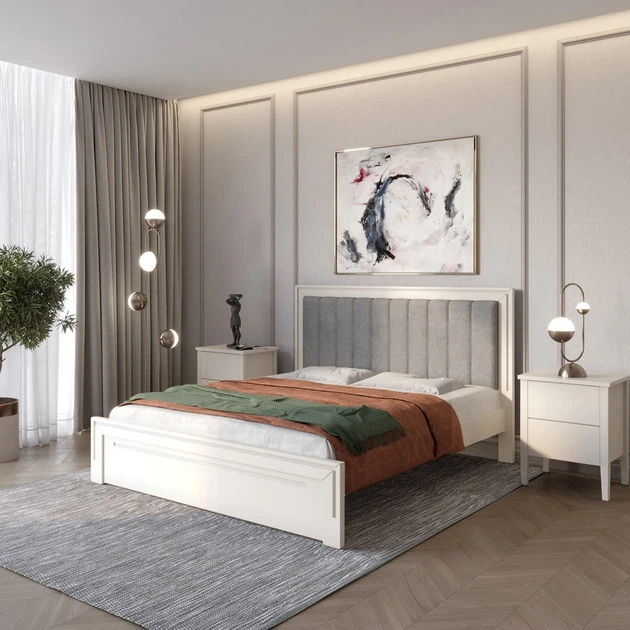Двоспальне дерев'яне ліжко Mebigrand Торонто Т6 Світло-сірий (RAL 7040)/Аляска 23 (бежевий) 160х190 см (MBG-9617)