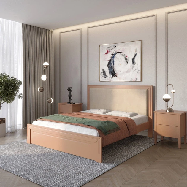 Двоспальне дерев'яне ліжко Mebigrand Торонто Т6 Коричневий (RAL8025)/Аляска 23 (бежевий) 180х190 см (MBG-9730)