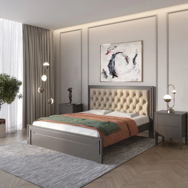 Односпальне дерев'яне ліжко Mebigrand Торонто Т6 Графітовий (RAL9011)/Аляска 23 (бежевий) 90х200 см (MBG-9705)