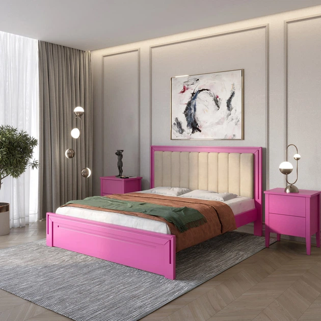 Односпальне дерев'яне ліжко Mebigrand Торонто Т5 Рожевий (S2060R30B)/Аляска 93 (сірий) 90х200 см (MBG-9200)