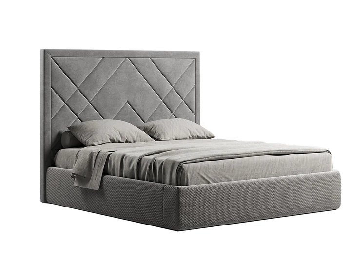 Ліжко двоспальне з м'яким узголів'ям/підйомним механізмом без матраца 180x200 Саманта 2 Світ Меблів з металевим каркасом Сір