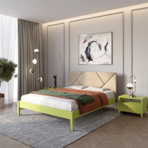 Полуторне дерев'яне ліжко Mebigrand Нью-Йорк ДК Лайм (S3050G70Y)/Аляска 23 (Бежевий) 120х200 см (MBG-10176)