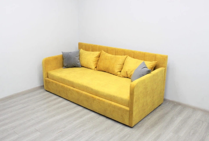 Ліжко з підйомним механізмом м'яке дитяче 90х200 Мері Шик-Галичина жовтий (каркас/матрац/натуральне дерево/тканина)