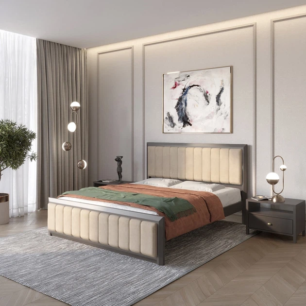 Односпальне дерев'яне ліжко Mebigrand Барселона Б1 Графітовий (RAL9011)/Аляска 23 (Бежевий) 90х200 см (MBG-11606)