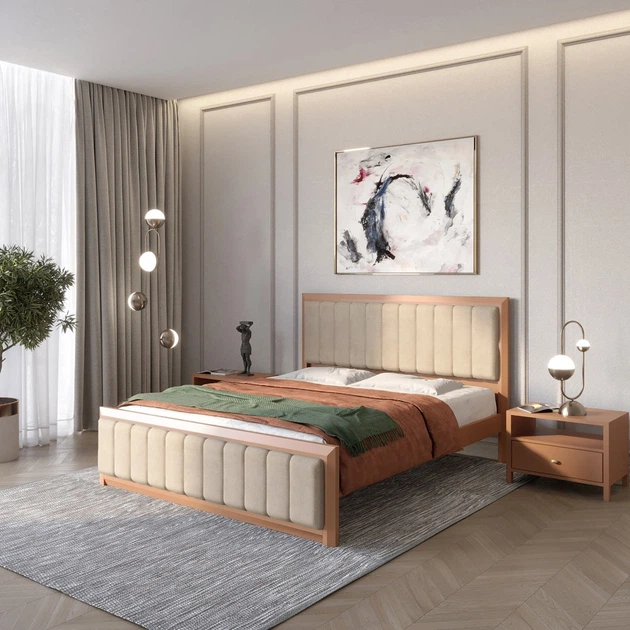 Односпальне дерев'яне ліжко Mebigrand Барселона Б1 Коричневий (RAL8025)/Аляска 23 (Бежевий) 90х200 см (MBG-11618)