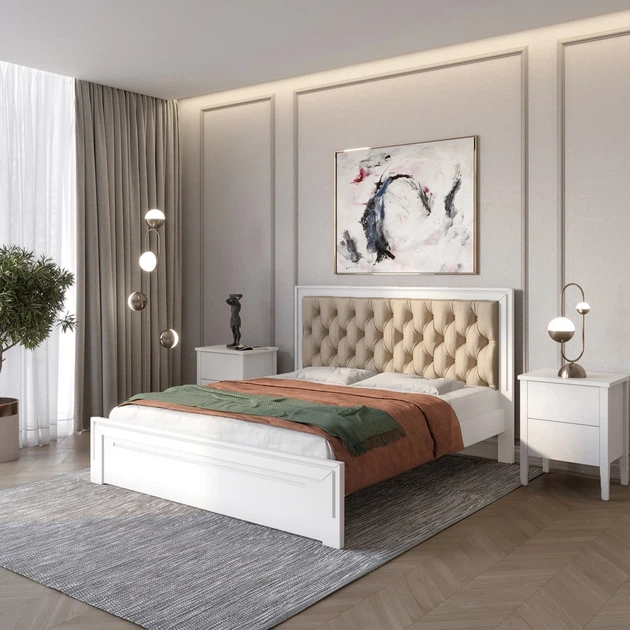 Двоспальне дерев'яне ліжко Mebigrand Торонто Т5 Білий (RAL9003)/Аляска 23 (бежевий) 160х190 см (MBG-10609)