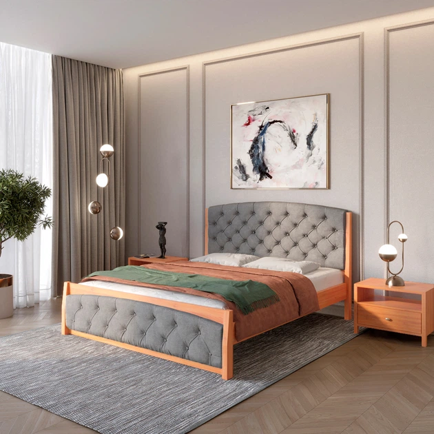 Односпальне дерев'яне ліжко Mebigrand Мехіко Яблуня/Аляска 93 (Сірий) 90х200 см (MBG-12180)