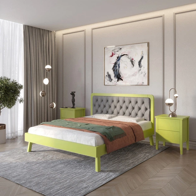 Двоспальне дерев'яне ліжко Mebigrand Токіо Лайм (S3050G70Y)/Аляска 93 (Сірий) 160х190 см (MBG-4756)