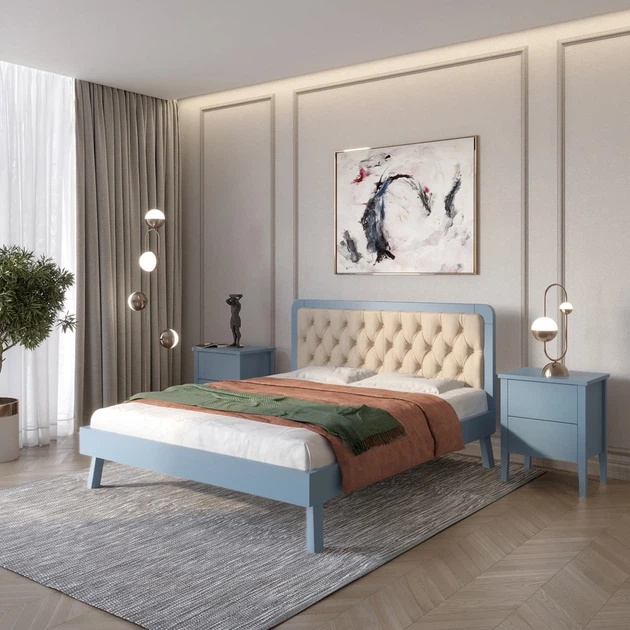 Двоспальне дерев'яне ліжко Mebigrand Токіо Сіро-синій (S7010R90B)/Аляска 23 (Бежевий) 160х190 см (MBG-4718)