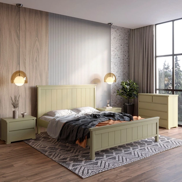 Двоспальне дерев'яне ліжко Mebigrand Вірджинія Оливковий (RAL1020) 180х200 см (MBG-3209)