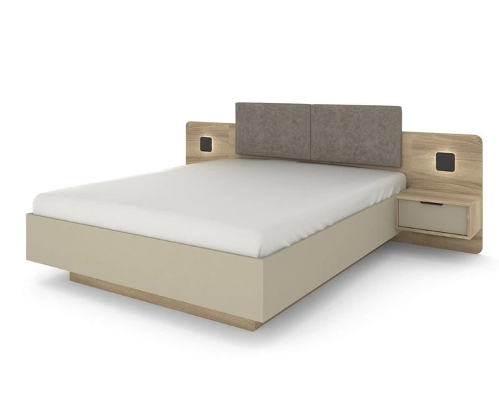 Ліжко (каркас) Летто / Letto 160 двоспальне з тумбами приліжковими та підсвіткою Дуб терра темний/сірий кам'яний Perfect Hom