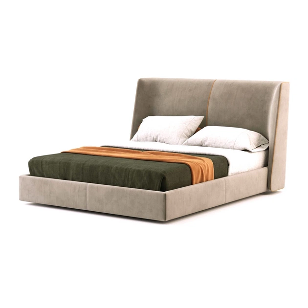 Ліжко двоспальне з м'яким узголів'ям MeBelle LUTIKA 180х200, каркас під матрац, коричневий пісочний велюр