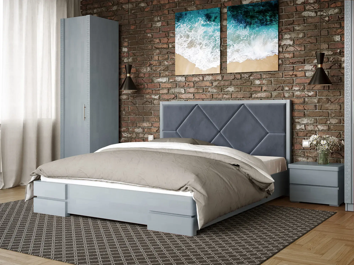 Ліжко двоспальне 180х200 з основою без матраца Олівія Арбор Древ Сірий (натуральне дерево бук/тканина велюр Лагуна 42)