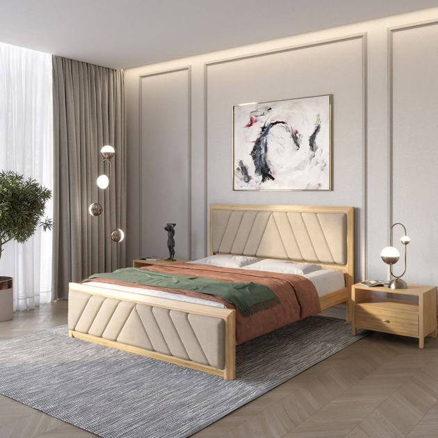 Двоспальне дерев'яне ліжко Mebigrand Барселона Б1 Яблуня/Аляска 23 (Бежевий) 180х200 см (MBG-11556)