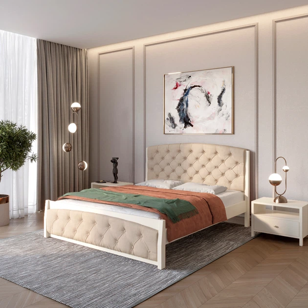 Односпальне дерев'яне ліжко Mebigrand Мехіко Білий (RAL9003)/Аляска 23 (Бежевий) 90х200 см (MBG-12025)