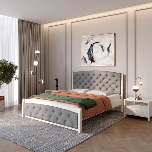 Односпальне дерев'яне ліжко Mebigrand Мехіко Світло-сірий (RAL7040)/Аляска 23 (Бежевий) 90х200 см (MBG-12061)