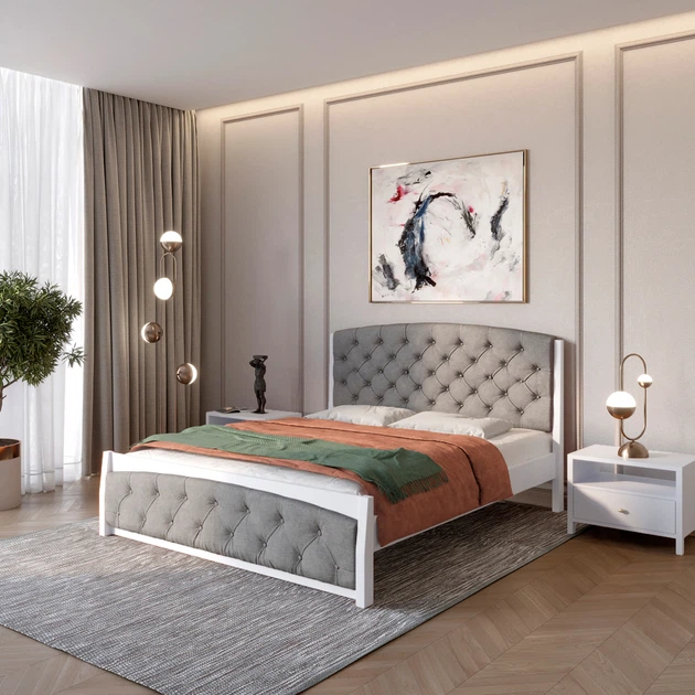Односпальне дерев'яне ліжко Mebigrand Мехіко Білий (RAL9003)/Аляска 93 (Сірий) 90х200 см (MBG-12252)