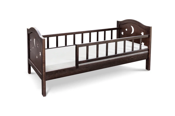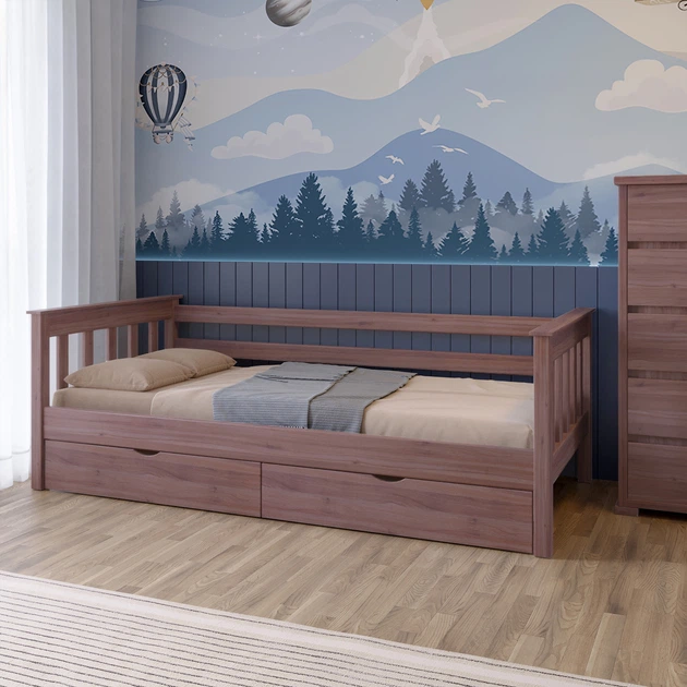Дитяче ліжко Mebigrand Скандинавія Літл-2 Горіх лісовий 90х200 см із заднім бортиком та ящиками (MBG-2635)