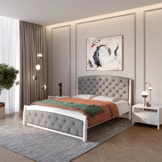 Односпальне дерев'яне ліжко Mebigrand Барселона Б5 Айворі (S0505Y30R)/Аляска 93 (Сірий) 90х200 см (MBG-14235)