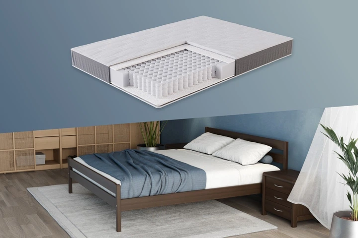 Комплект MNGER Ханна + матрац Flatorto з бука (масив), 90x200, без підйомного механізму, 4,5 см між ламелями, кольори горіх