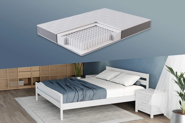 Комплект MNGER Ханна + матрац Flatorto з бука (масив), 90x200, без підйомного механізму, 4,5 см між ламелями, кольори слонов