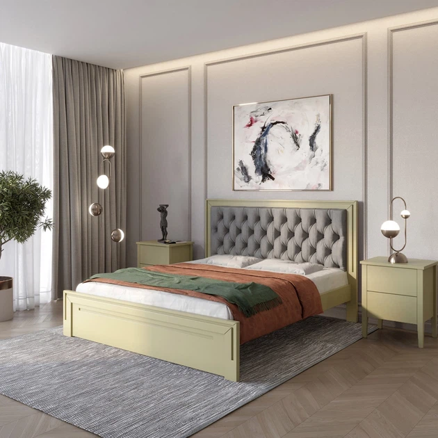 Двоспальне дерев'яне ліжко Mebigrand Торонто Т2 Оливковий (RAL1020)/Аляска 93 (сірий) 160х190 см (MBG-10047)