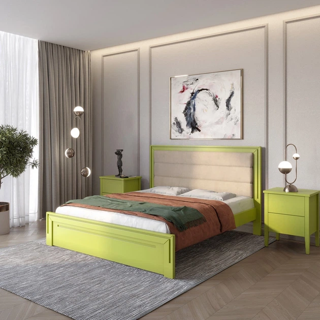 Двоспальне дерев'яне ліжко Mebigrand Торонто Т2 Лайм (S3050G70Y)/Аляска 23 (бежевий) 160х190 см (MBG-7356)