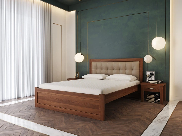 Ліжко двоспальне з масиву дерева бук 180*200 Cube Горіх Woodman без матраца