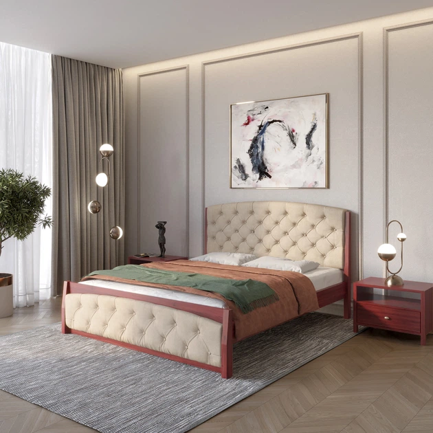 Односпальне дерев'яне ліжко Mebigrand Барселона Б5 Махонь/Аляска 23 (Бежевий) 90х200 см (MBG-13035)