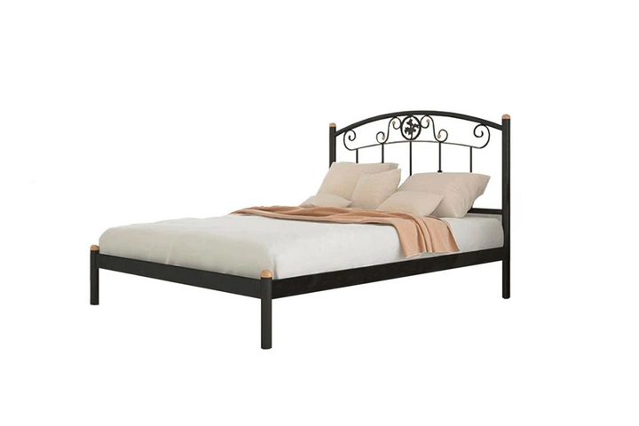 Ліжко двоспальне 180х190 Тіффані Метал-Дизайн Чорний оксамит (метал/букові ламелі)