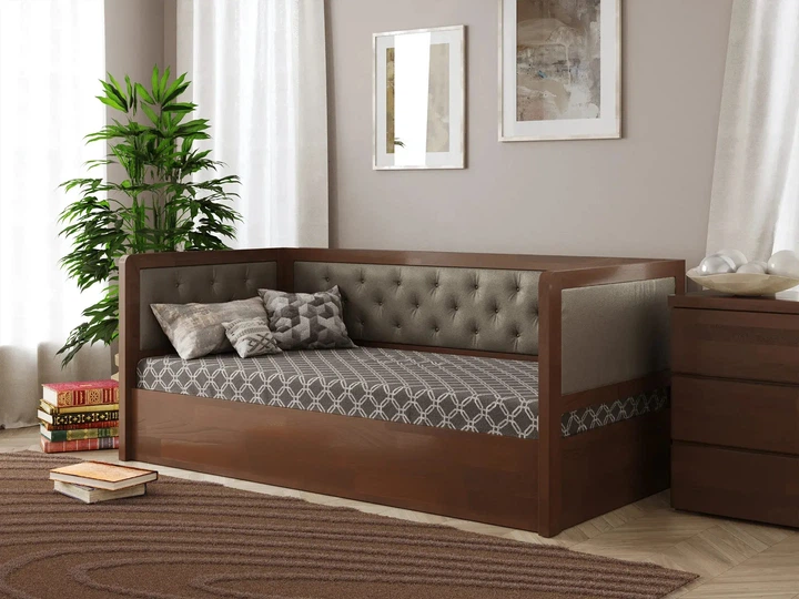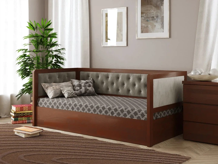 Ліжко підліткове з підйомним механізмом з натурального дерева сосна 80х190 Немо Люкс М Арбор Дерево Темний горіх