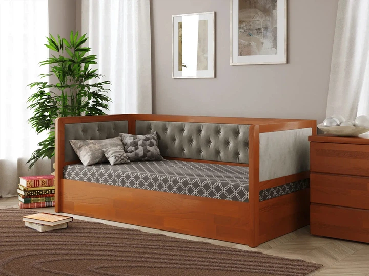 Ліжко односпальне з додатковим спальним місцем із натурального дерева Бонні Duo 80х190 з бортиком та ящиками Ral Luna (без м