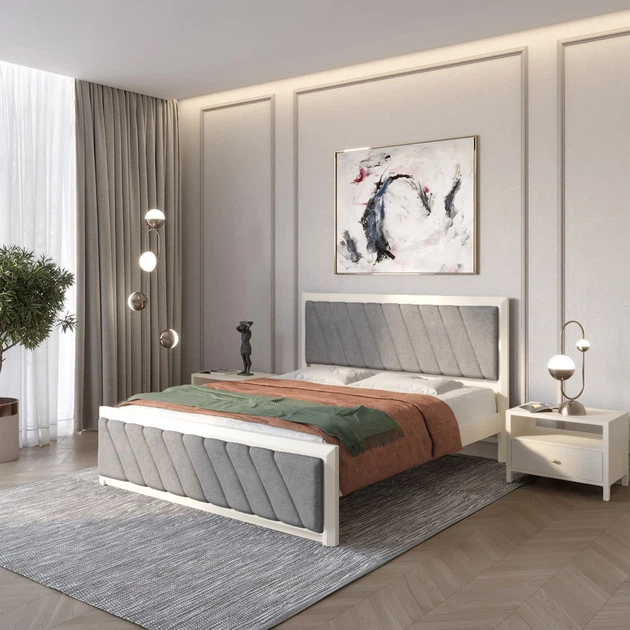 Односпальне дерев'яне ліжко Mebigrand Барселона Б5 Білий (RAL9003)/Аляска 93 (Сірий) 90х200 см (MBG-14211)