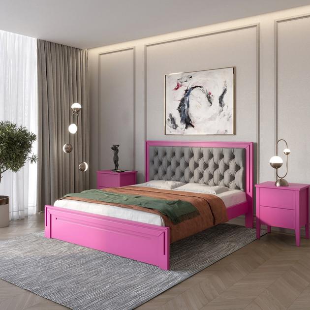 Полуторне дерев'яне ліжко Mebigrand Торонто Т3 Рожевий (S2060R30B)/Аляска 93 (сірий) 120х200 см (MBG-8369)