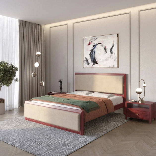 Односпальне дерев'яне ліжко Mebigrand Барселона Б4 Махонь/Аляска 23 (Бежевий) 90х200 см (MBG-12819)