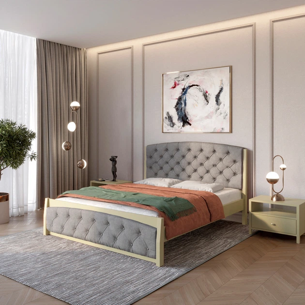 Односпальне дерев'яне ліжко Mebigrand Мехіко Оливковий (RAL1020)/Аляска 23 (Бежевий) 90х200 см (MBG-12109)